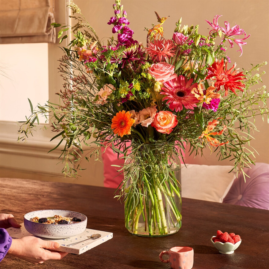 Wat een blikvanger is dit boeket, de schoonheid in haar hoogste vorm. Het boeket Subliem is een mooi, luxe boeket met de meest exclusieve bloemen van dit moment en een ware eyecatcher. Een exclusief en luxe boeket met een weelderige uitstraling. Het perfe