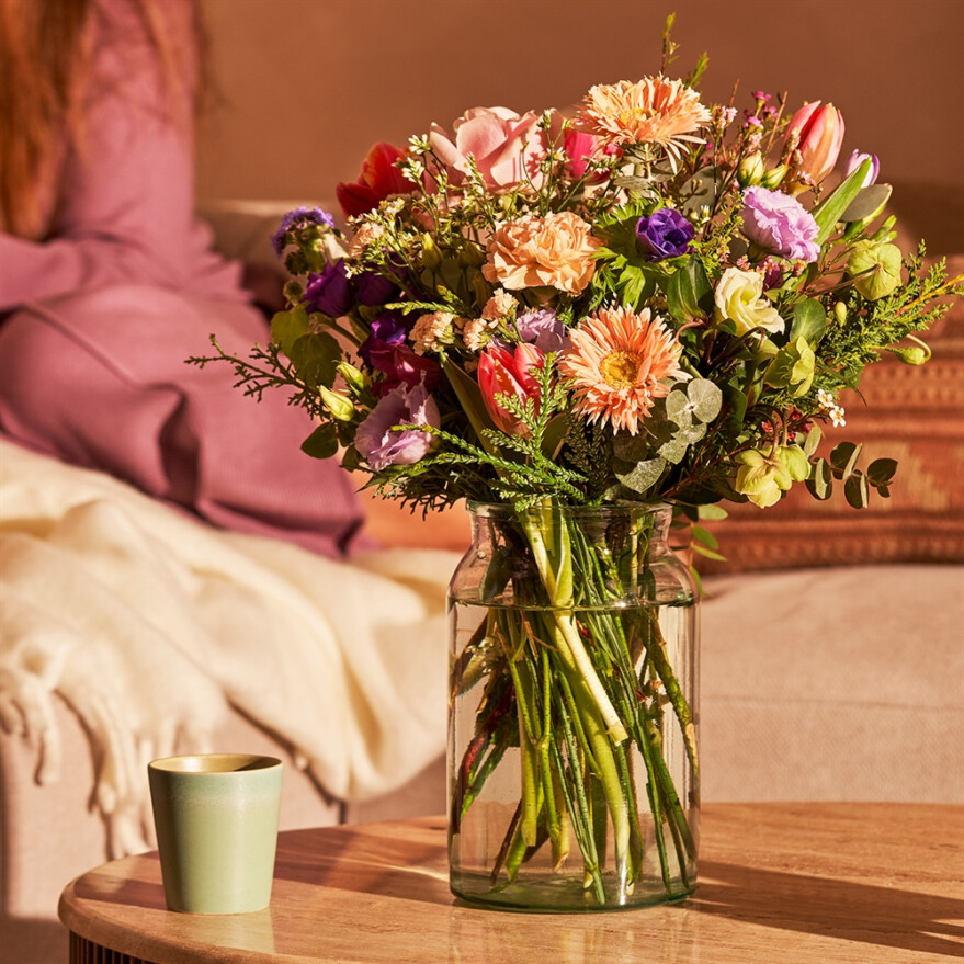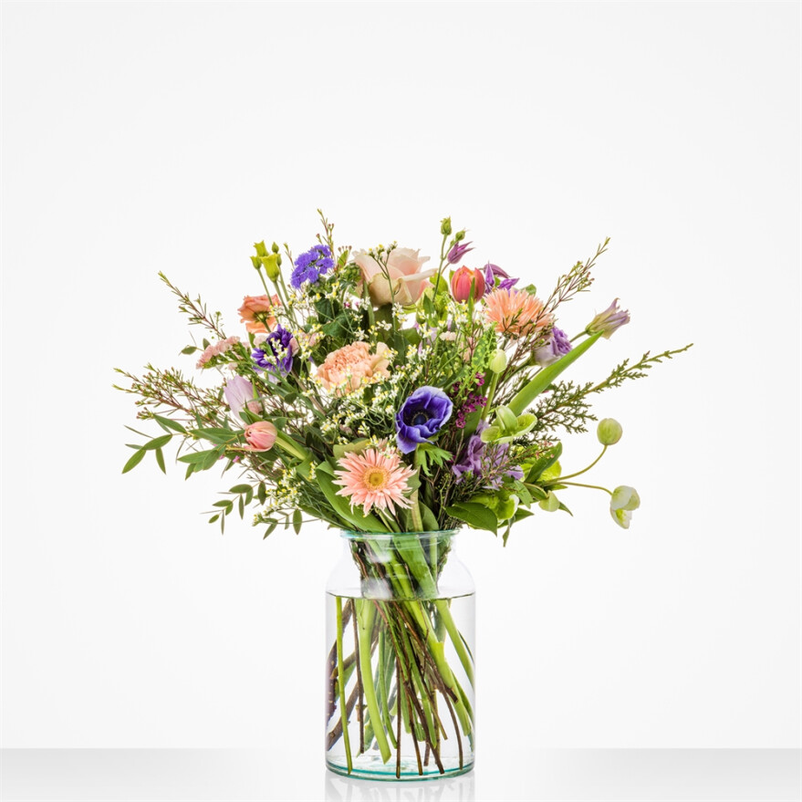 Geniet van al het moois dat het voorjaar te bieden heeft met dit prachtige boeket vol seizoensbloemen. Een lust voor het oog dankzij de fijne Eustoma, lieflijke roos en mooie gerbera in blauwe, roze en witte tinten. Wie verras jij met dit onweerstaanbare