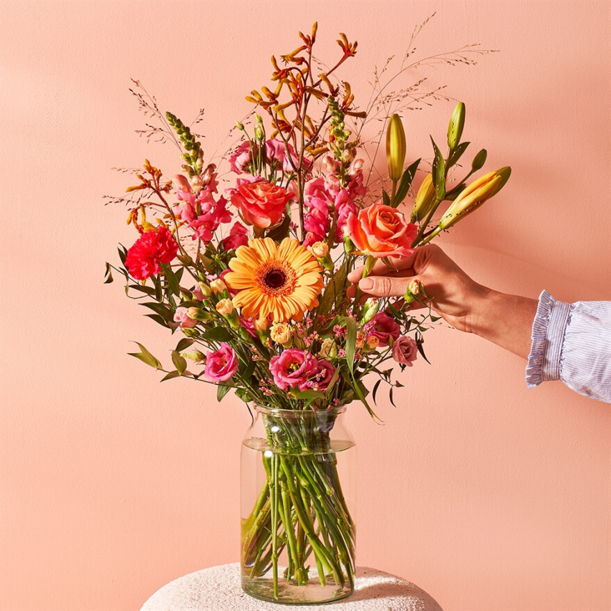 Dit kleurrijke, vrolijke plukboeket is het ideale cadeau voor een verjaardag, jubileum, aan je geliefde of om zomaar iemand mee te verrassen. Het Vrolijk plukboeket is speels en luchtig van vorm en bevat de allermooiste seizoensbloemen in de meest kleurri
