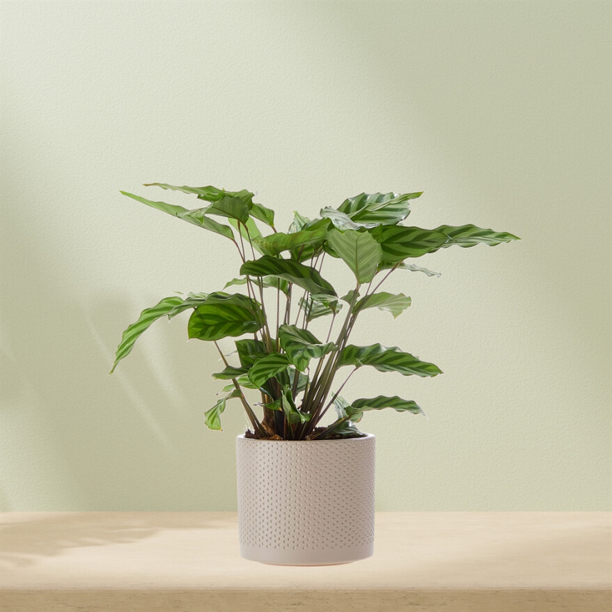 De Calathea is een sterke en mooie kamerplant waar iedereen blij van wordt. Calathea voelt zich prima op haar gemak op donkere plekken, maar gedijt ook prima in de zon of op vochtige plekken (zoals de badkamer). Een ware favoriet en zeer onderhoudsvriende