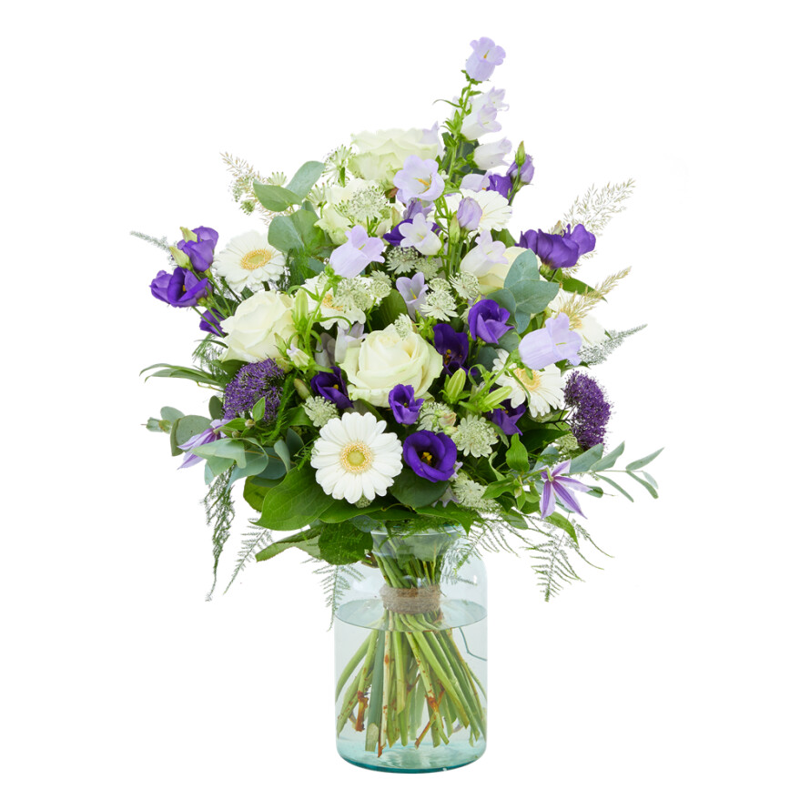 Het rouwboeket Ingetogen is een compact, tijdloos en pastelkleurig boeket. Wit staat symbool voor puurheid, oprechtheid en perfectie. Krachtige eigenschappen die een waarde vertegenwoordigen en die je terugziet in de dit pure rouwboeket. De klassieke en t